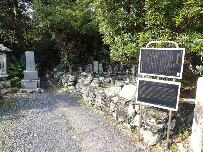 ⑦…12:00島内で昼食(島寿司)12:40…大里玉石垣集落見学…宇喜多秀家の墓見学・南原千畳岩海岸見学