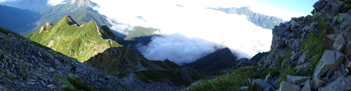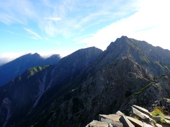 今回は西穂山荘に泊まり翌朝ヘッドライトの灯りを頼りに出発して変化に富んだ岩稜帯を