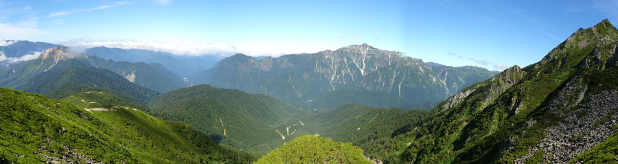 ※穂高連峰の南端にあり、さらに南へ続く稜線は焼岳に至る。東側は上高地の谷を隔てて霞沢岳と向かい合い、西側は蒲田川の新穂高温泉を挟んで笠ヶ岳がすばらしい。標高は3000mを切っているが、岩稜、お花畑、ハイマツと、高山帯の要素がそろっているので、北アルプスの入門コースとして人気がたかい山である。