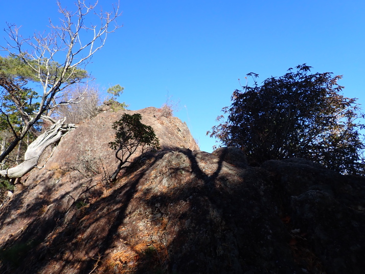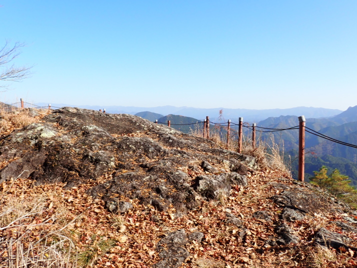 岩場のスリルを味わえる平山明神山、山城のあった岩古谷山など見所満載の4座縦走です