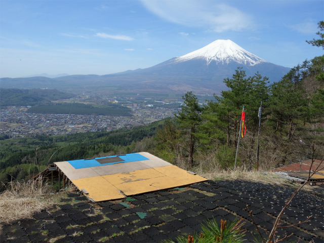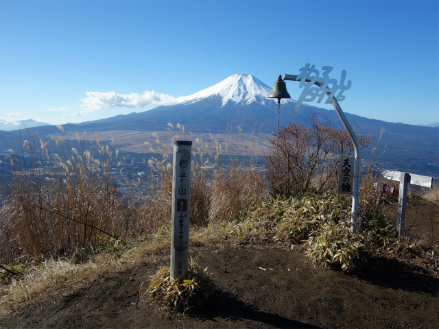 山頂からは、裾を広げた迫力ある富士山をはじめ南アルプスや白峰三山、大菩薩山系など360°の大パノラマを楽しめます。特に、空気の澄んだ冬場は、真っ青な空と冠雪した富士山のコントラストが素晴らしい光景が待っています。さらに、条件が揃えば、眼下に見える山中湖の彼方に相模湾を望むこともできます。